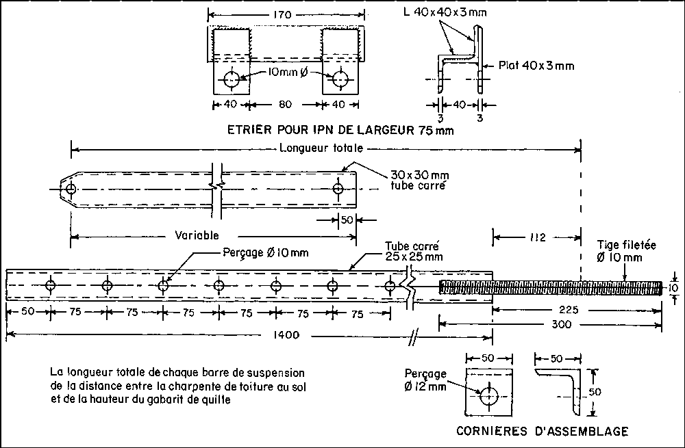 Il est donc nécessaire de connaitre la hauteur de la charpente par rapport aux entretoises de chaque couple pour calculer la longueur des tiges de suspension règlables.