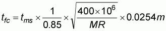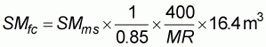 ffc = effort admissible de traction dans le ferrocimentLa valeur de 108 × 106 N/m2 dans la formule ci-dessus est la valeur supposée de l'effort de traction admissible pour l'acier doux de qualité ABS. Selon l'éndroit et l'orientation de l'élément particulier, elle peut atteindre 140 × 106 N/m2.SMfc = module de section du ferrociment