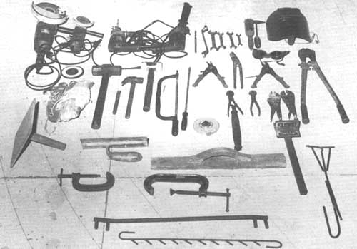 El mínimo equipo y herramientas necesarios para la construcción en ferrocemento variará naturalmente según el tipo de trabajos de armamento que se lleven a cabo y la variedad de los materiales utilizados, así como según los elementos que se confíen a un subcontratista. Sin embargo, suponiendo que se lleven a cabo algunos trabajos de carpintería y de soldadura de piezas de acero en el taller indicamos a continuación una lista apropiada: