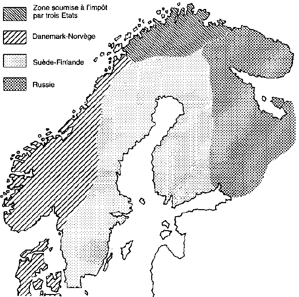 En 1600, la partie septentrionale du Sápmi était soumise à l'impôt par trois Etats simultanément