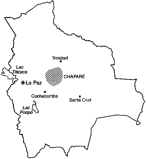 En octobre 1991, dans le cadre du programme de la FAO sur la foresterie communautaire intitulé Programme arbres, forêts et communautés rurales (FTPP), une équipe locale a été chargée d'une étude sur les communautés vivant le long du fleuve Chapare en Bolivie. Cette étude était centrée sur le rôle des forêts dans la subsistance des populations indigènes de la zone du Rio Chapare. Un des groupements qui ont participé à cette étude était celui des Yuracaré, communauté d'indigènes habitant la forêt (voir carte p. 29). Au cours d'entretiens avec les membres de la communauté Yuracaré, il est apparu qu'ils étaient très préoccupés par la nouvelle politique gouvernementale d'utilisation des terres. Cette politique établit une démarcation instaurant une série de zones protégées le long du fleuve Chapare, qui entourent en gros la zone forestière habitée par les Yuracaré. De tout temps, cette communauté migre sur de vastes espaces. Cette tradition, qui permet d'éviter une surexploitation de la forêt, a été mise à mal par l'établissement de zones protégés qui réduit la liberté de mouvement des Yuracaré. Ces derniers se sentent menacés par cette politique qui limite leur accès aux forêts environnantes, or, étant dépourvus d'une reconnaissance juridique de leurs droits d'utilisation de la forêt, les Yuracaré n'ont aucune garantie de pouvoir continuer à y puiser leur nourriture, leurs médicaments et tout ce dont ils ont besoin pour vivre.