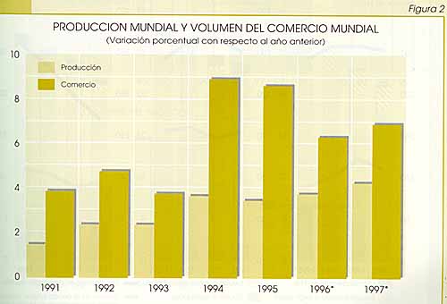 Según datos del Fondo Monetario Internacional1, la producción económica mundial creció en 1995 un 3,5 por ciento, cifra inferior al 3,7 por ciento del año anterior y marginalmente más baja que la tendencia a largo plazo. La tasa de crecimiento de 1995 fue resultado de los siguientes factores: