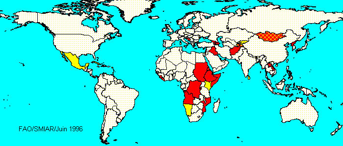 Carte des perspectives de récolte et des pénuries alimentaires