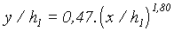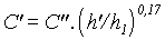 C est le coefficient de débit qui varie de 0,49 à 0,495 pour la charge h1 correspondant à l'équation du profil. Si la charge h' est différente de celle ayant servi au calcul du profil, le coefficient de débit devient: