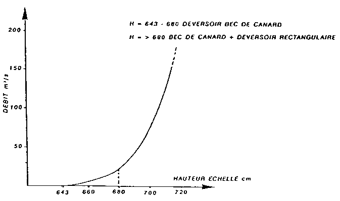 FIGURE 62. Courbe d'étalonnage des déversoirs du barrage de Loumbila (Burkina Faso)