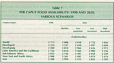 FOOD AVAILABILITY: 1990 AND 2020, VARIOUS SCENARIOS