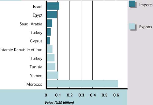 In general, the region does not contribute substantially to international fish trade, although Morocco is a major exporter of fish and is expected to increase its exports as the European demand for high-value fish increases and the Moroccan national fleet expands. Its sardine processing sector has incorporated the latest technology to allow competitive production at world prices. Other countries export mostly high-value fish, with some cephalopods and crustaceans, to European markets and Japan. A number of countries have a modest but expanding trade in fresh and frozen fish to Europe, and intraregional trade to Saudi Arabia, Israel, Bahrain, Qatar and the United Arab Emirates.