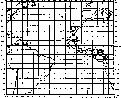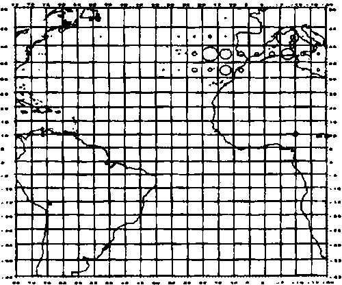 Figure 10. Geographical distribution of swordfish catches by surface fisheries, average for 1983-93.