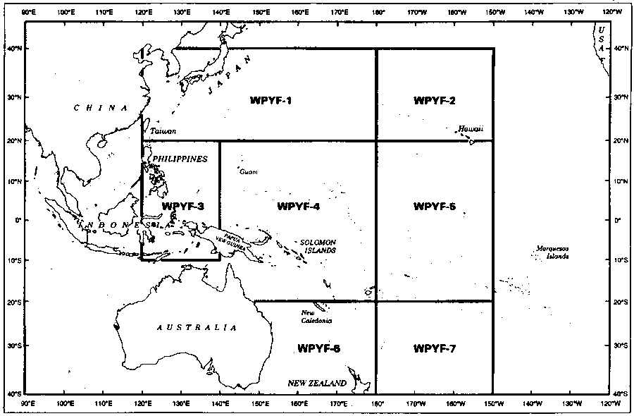 Another feature of yellowfin is that they move, sometimes over long distances. The pattern of their movement is not well understood, and its significance with respect to fishery interaction is unknown, but the potential exists for fisheries to interact when they are separated in space as well as when they are located in the same region. To evaluate that significance, the model needs to incorporate movement within and among the WPYRG statistical areas (Figure 1).