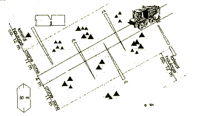 For higher gradients power saw drill, mini-cutter, one-axle skidder and special clear cutter can be chosen. Semi-legged vehicles are still in their testing stage. In flat areas, scarification is applied in patches or strips; on slopes only small sections are prepared. Devices used in agriculture and adapted by forestry can cover large areas in a short time and can therefore be used economically. The disk harrow is a most economical device since its cutting depth is small and it can be pulled by light machines. Whereas the choice is big for flat areas, it is very small for slopes. Power saw drill, mini-cutters and one-axle skidders seem to be blocked in their development and their employment is restricted to individual cases. Scarification by semi-legged vehicles has to be further tested to yield any practicable results.