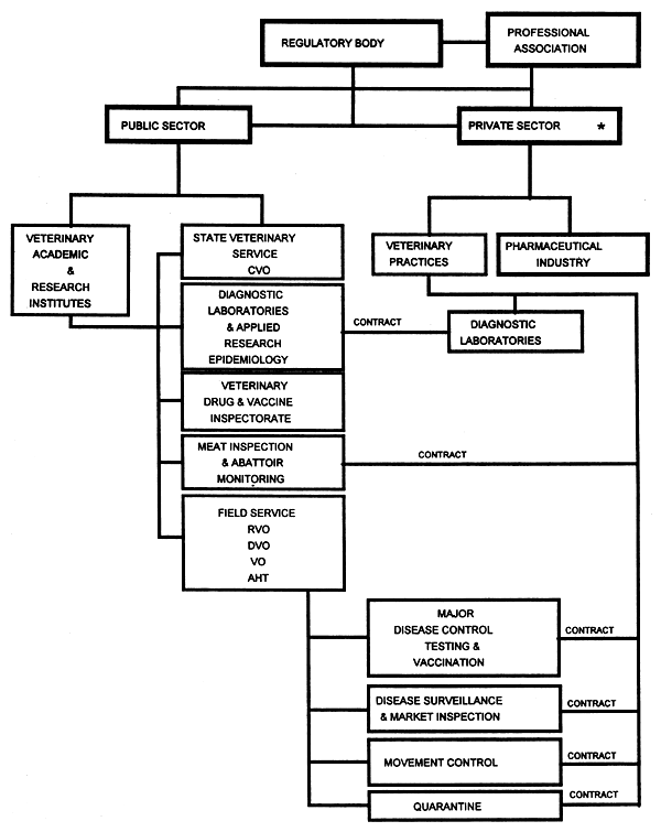 Traditionally, the control of epidemic diseases of livestock has been the preserve of government veterinary services staffed by full time employees. Some animal health support to the livestock industry is now being provided by veterinarians and others in the private sector and the implementation of a major CBPP Control campaign provides the opportunity to encourage this development. The private sector should be offered sufficient incentive that will encourage it to undertake much of the routine vaccination and surveillance work but under the control of a designated group of public sector veterinary inspectors. It is essential that the campaigns are planned and supervised by the government services. This should lead eventually to government veterinary services with reduced staff numbers but increased skills in the field of strategic planning, surveillance, epidemiology and diagnosis. Consequently the CBPP control campaign should make a significant contribution to the evolution of effective national veterinary services with a synergistic balance between the public and private veterinary sectors as depicted in the attached chart (Annex 3).