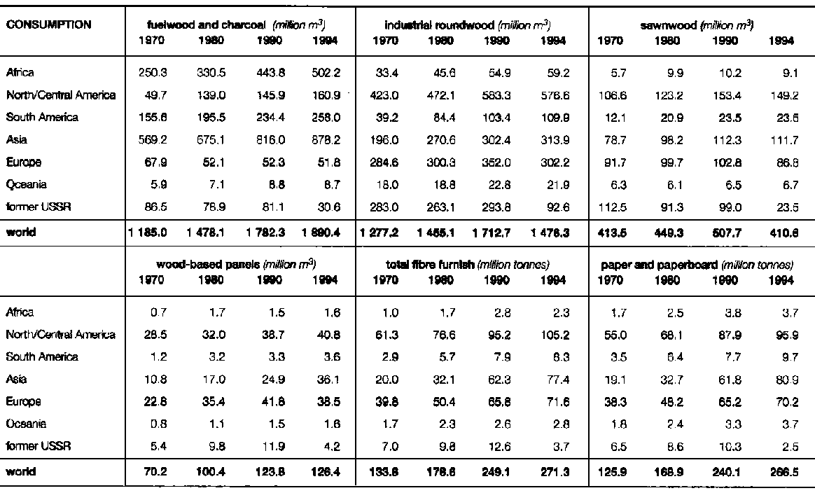 World production and consumption of forest products; 1970,1980,1990 and 1994