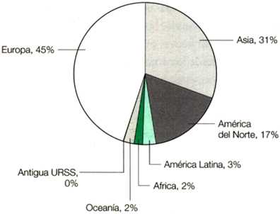 Figura 1 Areas forestales por regiones principales en 1995
