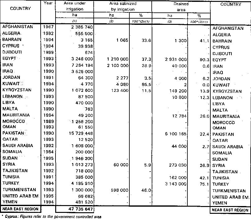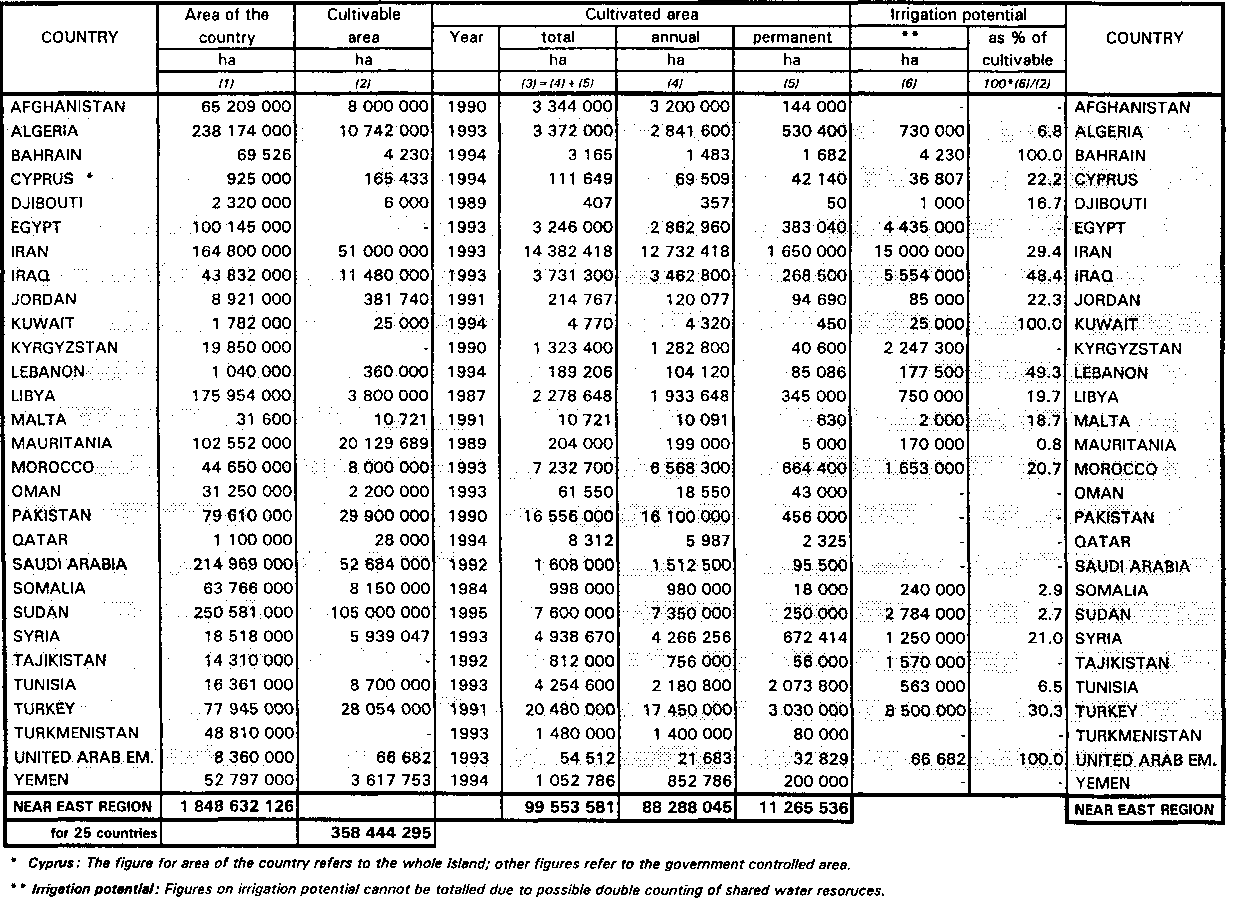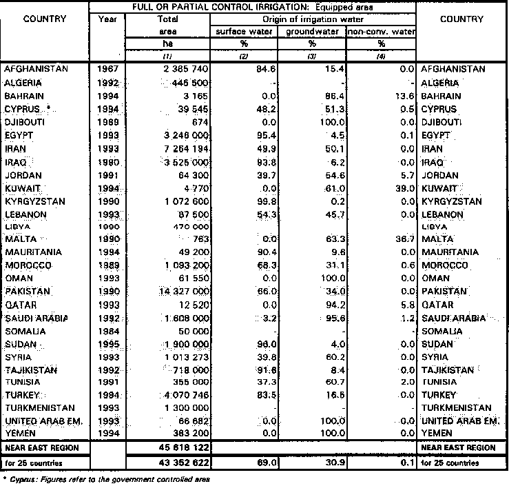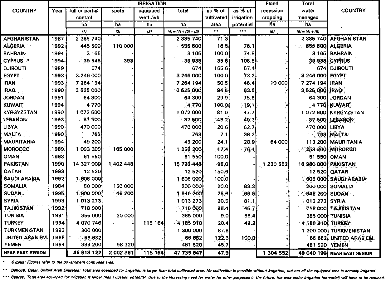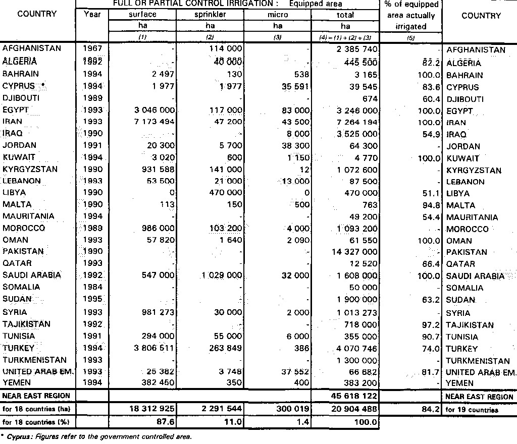 Table 17 - Full or partial control irrigation techniques in the Near East Region