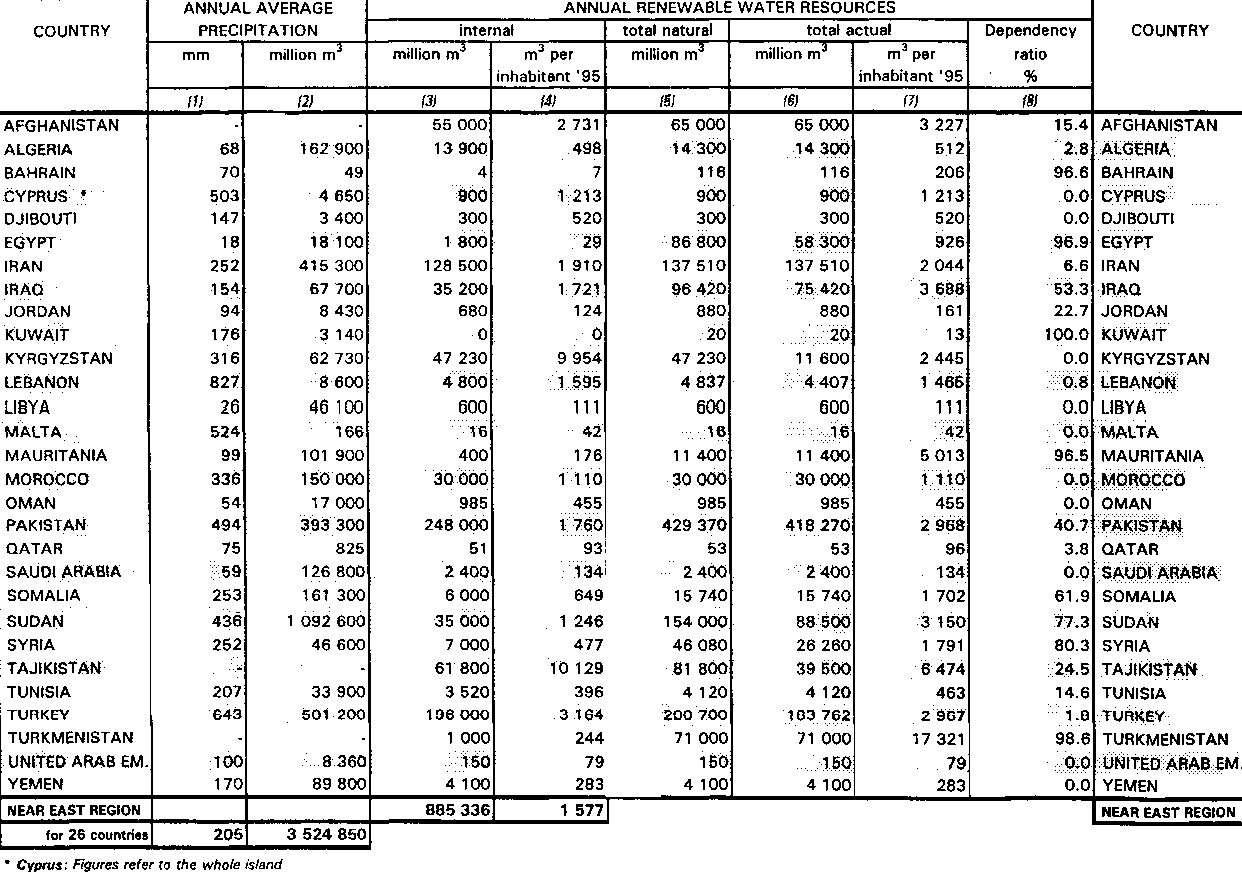 Figure 4 - Annual actual renewable water resources per inhabitant 11995)