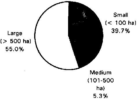 In 1994, 21 746 ha consisted of large schemes (> 500 ha), 2 091 ha of medium schemes and 15 708 ha of small schemes (<100 ha) (Figure 5).