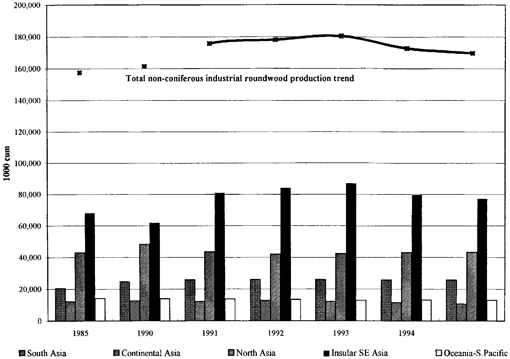 Figure 4. Total Non-coniferous Industrial Roundwood Production for the Asia-Pacific Region