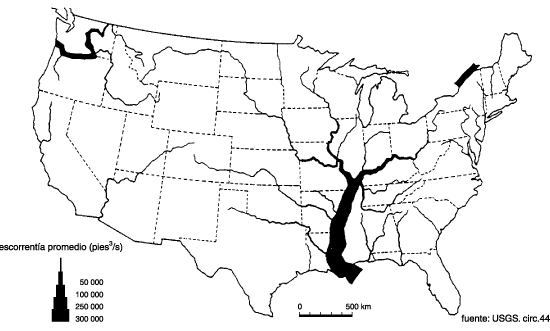 Mapa de la escorrentía media anual (Fuente: USGS)