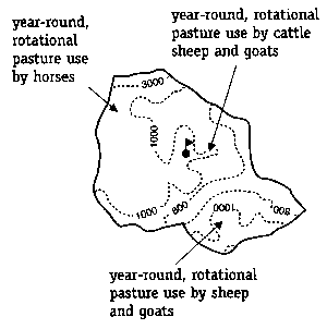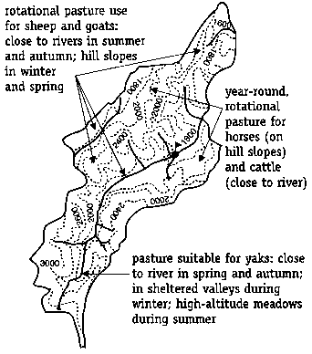 Private households exercised customary use rights over specific areas, defined in relation to the ecological resource base, and they customarily owned areas of pasture which they used during winter and spring.