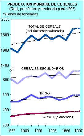 PRODUCCION MUNDIAL DE CEREALES - PRONOSTICO PARA 1997