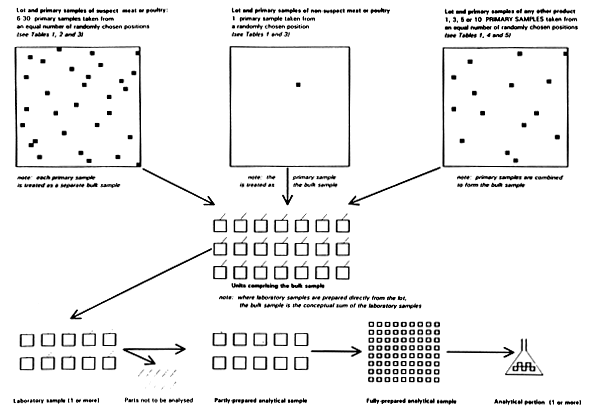 Notes a) Les méthodes d'échantillonnage requises pour les céréales1, les légumineuses2 et le thé3 sont décrites dans les recommandations de l'ISO et celles requises pour les produits laitiers4 sont décrits par la Fédération internationale de laiterie (FIL).