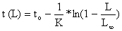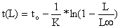Para converter a “curva de captura acumulada” (Eq.4.4.4.1) em uma equação que possa ser utilizada para uma análise baseada em comprimentos, a equação inversa de von Bertalanffy (Eq. 3.3.3.2)