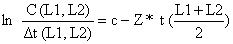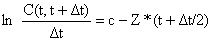 ln C(t1,t2) = d - Z*t1 + ln[1 - exp(-Z*(t2-t1))]