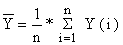 onde N é o tamanho da população (N = 100 no exemplo) e n é o tamanho da amostra. Seja Y(i) o desembarque no local de desembarque no i da amostra, i = 1,2,…n, e seja Y o desembarque médio para todos os locais de desembarque, então o desembarque médio estimado é dado por: