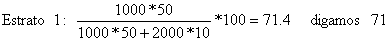 Então as 100 observações deveriam ser repartidas por cada estrato de acordo com a Eq. 7.2.4 nas seguintes proporções: