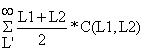 | L1–L2 | C(L1,L2) | ∑C(L1,L∞) acumulado | ln∑C(L1,L∞) (y) | ln(L∞-L1) (x) | Z/K (declive) | observações |