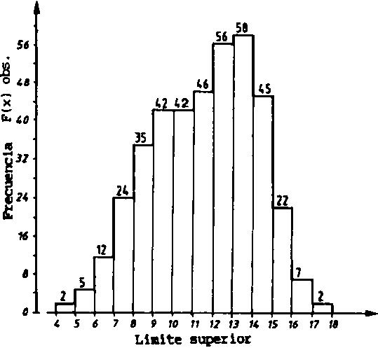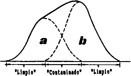 Fig. 17.2.6B Distribución de frecuencias de la muestra (se supone que éstas están constituidas por dos distribuciones normales).