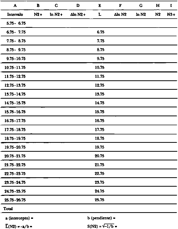 Repita la reestructuración usando la hoja de trabajo (3.5.1a) sobre la base de intervalos de 4 cm (vea figura de la hoja de trabajo), en lugar de intervalos de 2 cm.