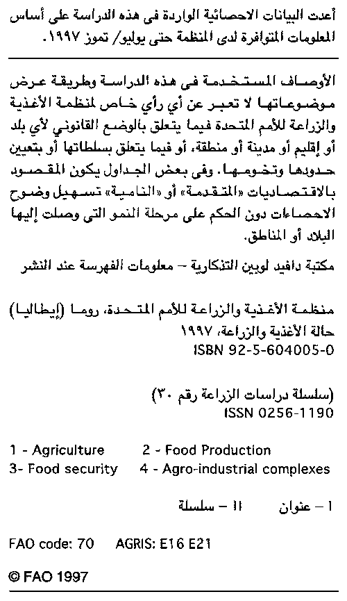 ÍÇáÉ ÇáÃÛÐíÉ æÇáÒÑÇÚÉ 1997