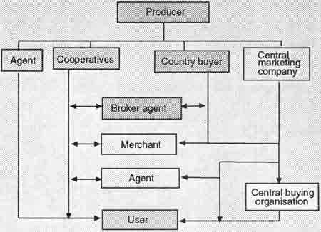 As can be seen from the above figure there are a possible number of alternatives for distributing cotton. Basically the choice comes down to two alternatives, the producer/seller selling direct or through an international merchant or agent.