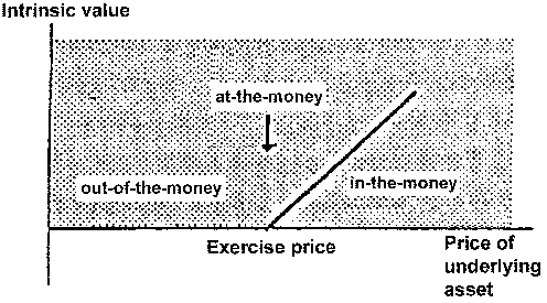 The intrinsic value of an option is the profit the option holder would make if he decided to exercise his option immediately. It is always positive.