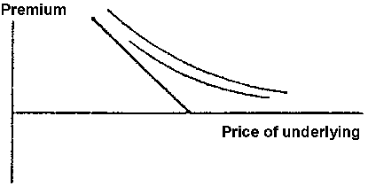Put buyer pays the premium and obtains the right, but not the obligation to sell the underlying asset at the exercise price until the expiration date. | |