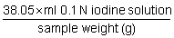 in which V and N are the volume and normality, respectively, of the hydrochloric acid, W is the weight of the sample, in g, and e is the equivalence factor, e = 31.0. |