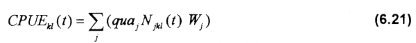 CPUE in site kl in time t (CPUEkl(t)) is estimated by: