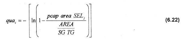 where: pcap is the probability of capture by the gear; area is the area swept per day; SELj is the age-specific gear retention (see Chapter 4); and AREA is the area occupied by the stock.