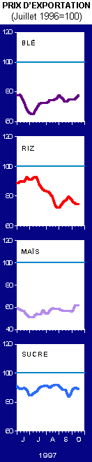 Trent et un pays, africains pour la plupart, souffrent encore de pénuries alimentaires. Les difficultés d’approvisionnement sont, le plus souvent, le fait des mauvaises conditions météorologiques mais les troubles intérieurs et les réformes économiques tiennent toujours une place importante. (voir encadré Crises alimentaires).