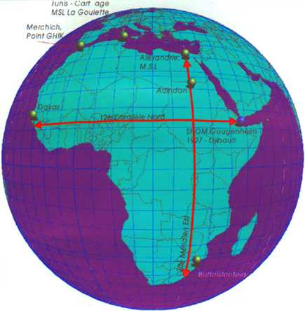 Figure 2 - Quelques points de référence géodésique et altimétriques pour l'Afrique