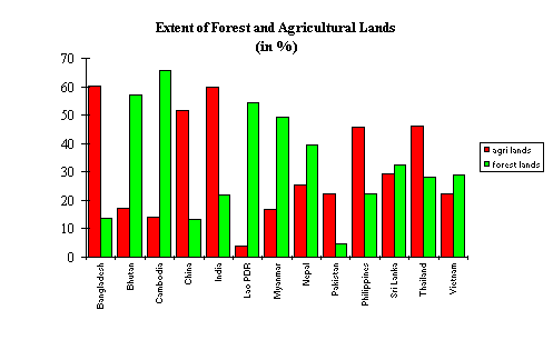 However, there are exceptions because wood energy use also depends on the availability or supply of fuelwood (resource endowment). Pakistan, for example, has a per capita income comparable to Bhutan, but the contribution of fuelwood to total final energy consumption in Pakistan (27%) is less than a third of that in Bhutan (85%). In Pakistan, substantial energy contributions come from the other biomass fuels (animal dung and crop residues). This is partly due to the fact that Pakistans forests (and agricultural resources) are not as rich compared to those of other countries in the region. Bhutan, for example, has close to 60% forest cover, while Pakistans is not even 3% (Figure 4.2).