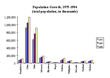 Nevertheless, a growing population will contribute to continued reliance on wood energy and other traditional fuels until people can afford to shift to modern fuels. This could be the case for many of the developing countries in Asia which have relatively high forecasted population growth (see Figure 4.10). The relative contribution of fuelwood, however, would decrease if supply, in the aggregate, become scarce which would lead people to turn to other biomass fuels. Localized fuelwood shortage, on the other hand, would increase the cost to people of securing fuelwood by increasing the time and effort for collecting the fuel from other areas or by shifting to available but more expensive commercial fuels.