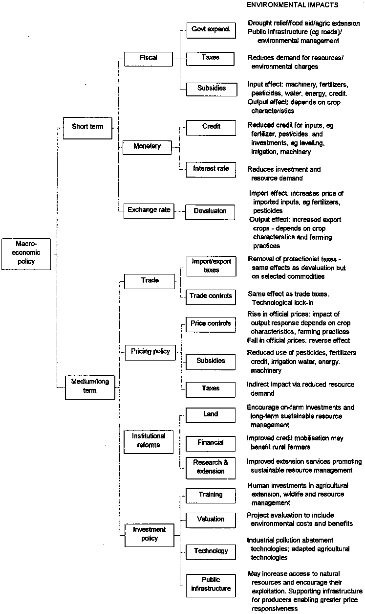 A summary of some of the complex linkages between macroeconomic policies and the environment is provided in Figure 1, which is taken from Markandya (1994).