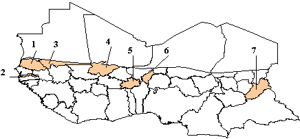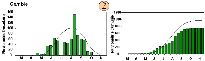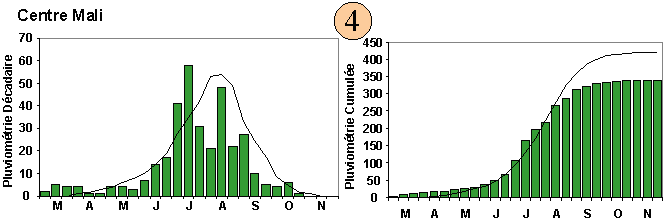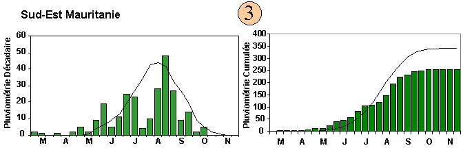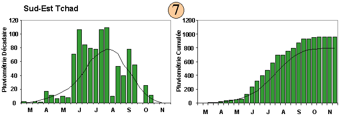 Evolution des valeurs des images de durée de présence des nuages à sommets froids (CCD) sur différentes zones du Sahel