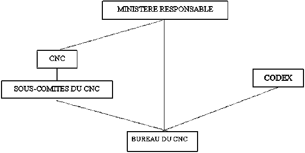 1. La personne la plus haut placée au ministère responsable assume la présidence.2. Le(s) ministère(s) intéressé(s): ce sont ceux de la santé, de l'agriculture et des pêches, du développement industriel, du commerce international, de la protection des consommateurs, des sciences et des technologies, des affaires étrangères et de la planification économique.