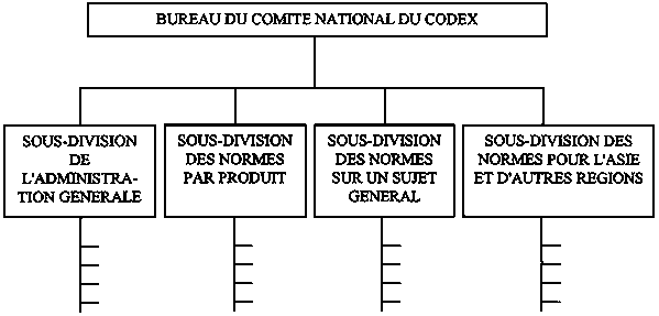 La structure organisationnelle du Bureau du Comité national du Codex peut être analogue à celle de la Commission du Codex Alimentarius.