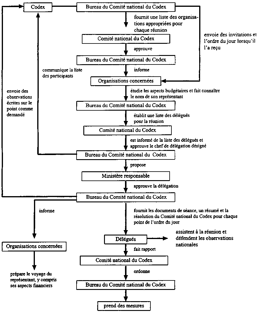 Celle-ci est double. D'abord, les pays membres eux-mêmes ressentent la nécessité d'un centre de liaison et de coordination pour les activités du Codex. Dans la plupart d'entre eux, plusieurs ministères s'intéressent ou participent directement aux systèmes de production, de distribution et de contrôle des denrées alimentaires. Normalement, tous ces ministères souhaitent être impliqués dans le processus de prise de décisions qui risque d'avoir un impact sur leurs domaines de responsabilités. De même, le secteur de l'agro-alimentaire comprend habituellement un nombre important de producteurs indépendants dont les intérêts peuvent être affectés par les décisions du Codex.