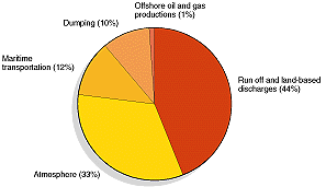 Wherever rising populations continue to be economically dependent on the primary producing sectors Ð agriculture, forestry and fisheries Ð and on other sectors directly dependent on natural resources, such as tourism and mining, the overexploitation of renewable and non-renewable resources, the degradation of ecosystems and the resulting loss of natural resource productivity are of primary concern. In this context, it is worth noting that marine pollution is derived mainly from land-based sources and the atmosphere (see Figure A.3), with river runoff and land-based discharges directly affecting coastal waters (GESAMP, 1990). More than 90 percent of all chemicals, refuse and other material entering coastal waters remains there in sediments, wetlands, fringing reefs and other coastal ecosystems.