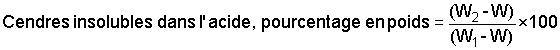 W2 est le poids le plus faible, en grammes, de la capsule avec les cendres insolubles dans lacide.